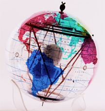 Chester wondered if the Chestahedron were the right sort of tetrahedron . . . so he had to find out, testing with a model. Chester found a clear globe showing the continents of the Earth and fashioned a Chestahedron of right scale to put inside. See how it matches up - it just fits. The points of the Chestahedron touch the surface of the Earth in exactly the places Steiner had seen in his clairvoyant vision. Mid-America turns out to be in Kansas. The plot thickened for Mr. Chester when syncronistically, Scientific American printed this cover story about new ways to investigate the nature of Earth’s core.