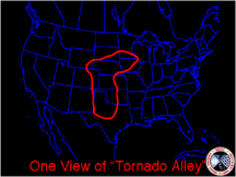 This map produced by seismology imaging uses blue colorings to represent cool areas, red the warmest, and yellow in between. Mr. Chester asked Mr. Ritsema “what do these patterns mean?” Mr. Ritsema shrugged, told Chester that "they had no idea of the meanings behind this data." With that, Mr Chester compared his data points and the map produced by Mr. Ritsema. The rounded triangular tracings are added by Frank Chester, superimposed as how the Chestahedron fits in the Earth according to Steiner's contact points. Consider the many correspondences that are there. Next piece of evidence: it turns out that tornado alley, so named because that area suffers the highest incidence of twisters, (map provided by the National Severe Storms Laboratory), is a tracing of the point of contact where two of these global lines meet in Mid-America, forming parts of two edges of the Chestahedron form.